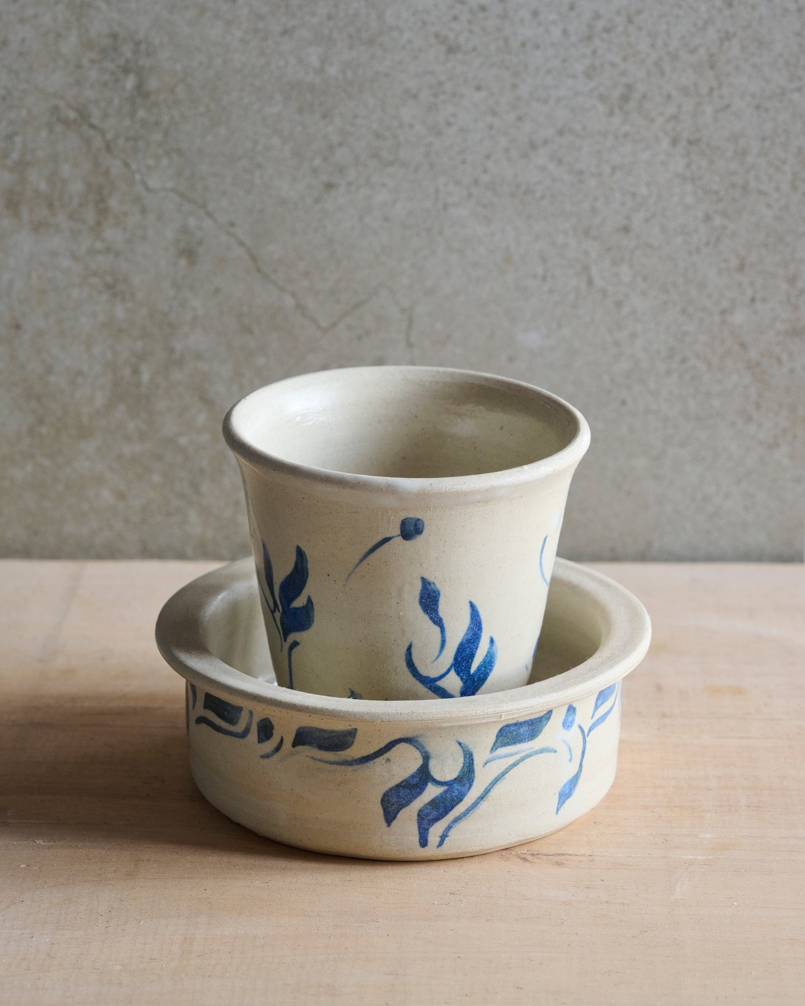 An elegant stoneware Dabrah set from the "Calligraphy" collection combines the timeless beauty of white and blue. Crafted with precision and fired at 1223°C, the set is designed to enhance both function and aesthetics. Its graceful calligraphic patterns bring an artistic touch, making it a refined addition to any collection.